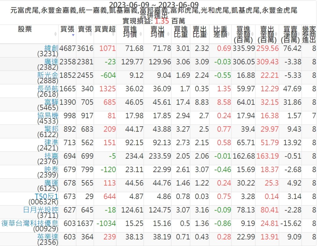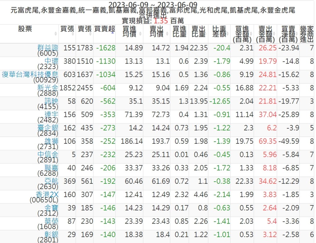2023-0609主力買賣超個股 2023-06-10 股狗網小編 籌碼面每日資訊 發表留言 投資達人APP上線囉!!!『安裝APP』: 可參考下文 『如何查詢當沖、隔日沖分公司券商買賣』 主力當沖券商: 『元富虎尾』,『永豐金嘉義』,『統一嘉義』,『凱基嘉義』,『富邦嘉義』,『富邦虎尾』,『光和虎尾』,『凱基虎尾』,『永豐金虎尾』。 『當沖標的』 『買超股票』 『賣超股票』 免責宣言 本網站文章所提供資訊僅供參考,並無任何推介買賣之意,投資人應自行承擔交易風險。 分享此文: 按一下即可分享至 X(在新視窗中開啟) X 按一下以分享至 Facebook(在新視窗中開啟) Facebook 喜歡 正在載入...