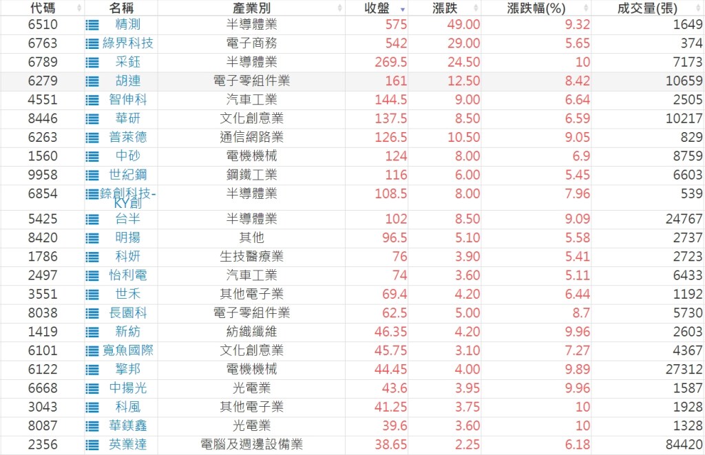 2023-0609股價創20日新高爆量上漲股 2023-06-10 aindex168 選股條件 發表留言 投資達人APP上線囉!!!『安裝APP』: 利用股狗選股的選股條件可以【挑選突破20日新高,爆量上漲起漲點股票】 1.股狗選股 https://www.stockdog.com.tw 2.選股條件: a.收盤價創20日新高 b.當日漲幅 > 2% C.成交量大於5日均量2倍 免責宣言 本網站文章所提供資訊僅供參考,並無任何推介買賣之意,投資人應自行承擔交易風險。 分享此文: 按一下即可分享至 X(在新視窗中開啟) X 按一下以分享至 Facebook(在新視窗中開啟) Facebook 喜歡 正在載入...