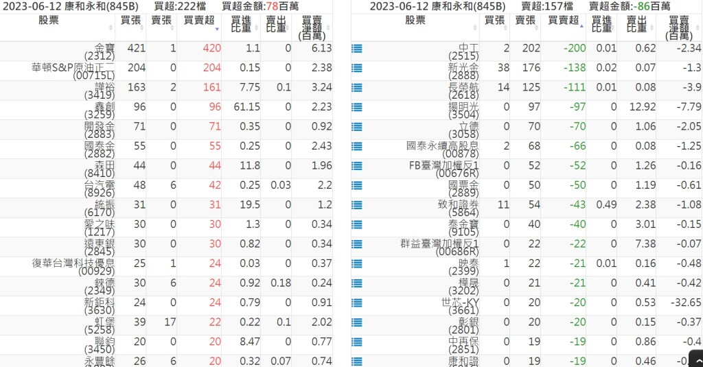 2023-0612關鍵券商買賣超 2023-06-13 股狗網小編 籌碼面每日資訊 發表留言 投資達人APP上線囉!!!『安裝APP』: 關鍵券商買賣超: 臺銀證券(1040): 台灣摩根士丹利(1470): 凱基台北(9268): 凱基信義(9216): 元大土城永寧(9875): 康和永和(845B) : 富邦建國(9658): 免責宣言 本網站文章所提供資訊僅供參考,並無任何推介買賣之意,投資人應自行承擔交易風險。 分享此文: 按一下即可分享至 X(在新視窗中開啟) X 按一下以分享至 Facebook(在新視窗中開啟) Facebook 喜歡 正在載入...