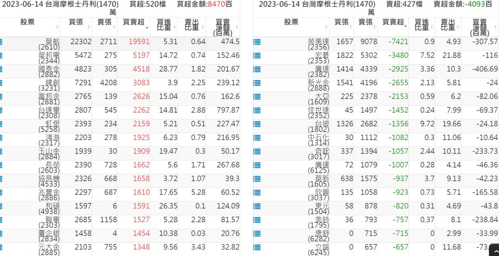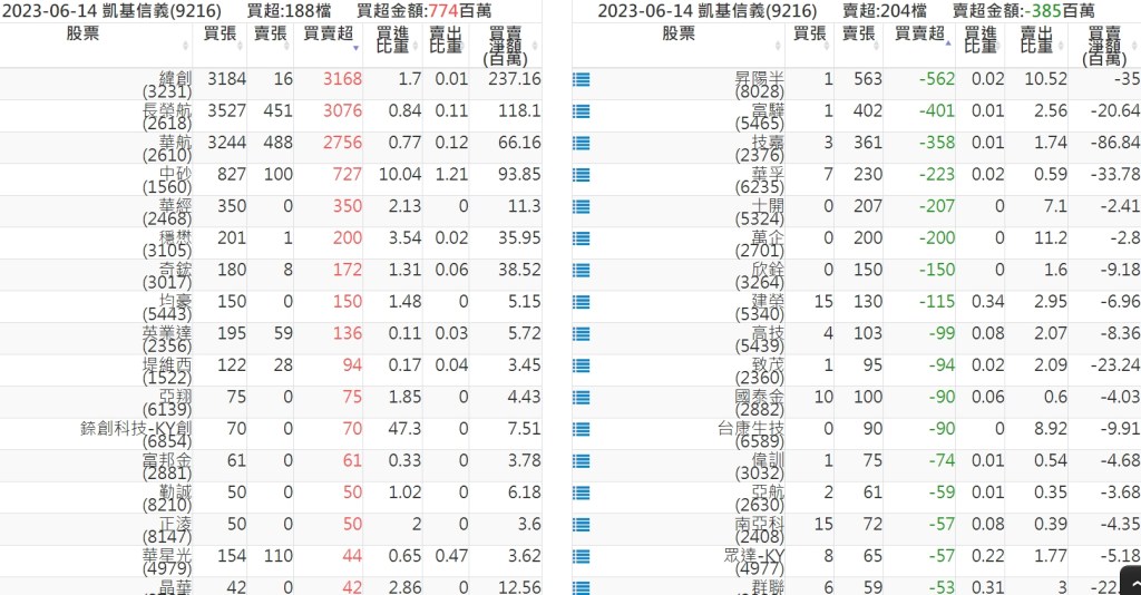 2023-0614關鍵券商買賣超 2023-06-15 股狗網小編 籌碼面每日資訊 發表留言 投資達人APP上線囉!!!『安裝APP』: 關鍵券商買賣超: 臺銀證券(1040): 台灣摩根士丹利(1470): 凱基台北(9268): 凱基信義(9216): 元大土城永寧(9875): 康和永和(845B) : 富邦建國(9658): 免責宣言 本網站文章所提供資訊僅供參考,並無任何推介買賣之意,投資人應自行承擔交易風險。 分享此文: 按一下即可分享至 X(在新視窗中開啟) X 按一下以分享至 Facebook(在新視窗中開啟) Facebook 喜歡 正在載入...
