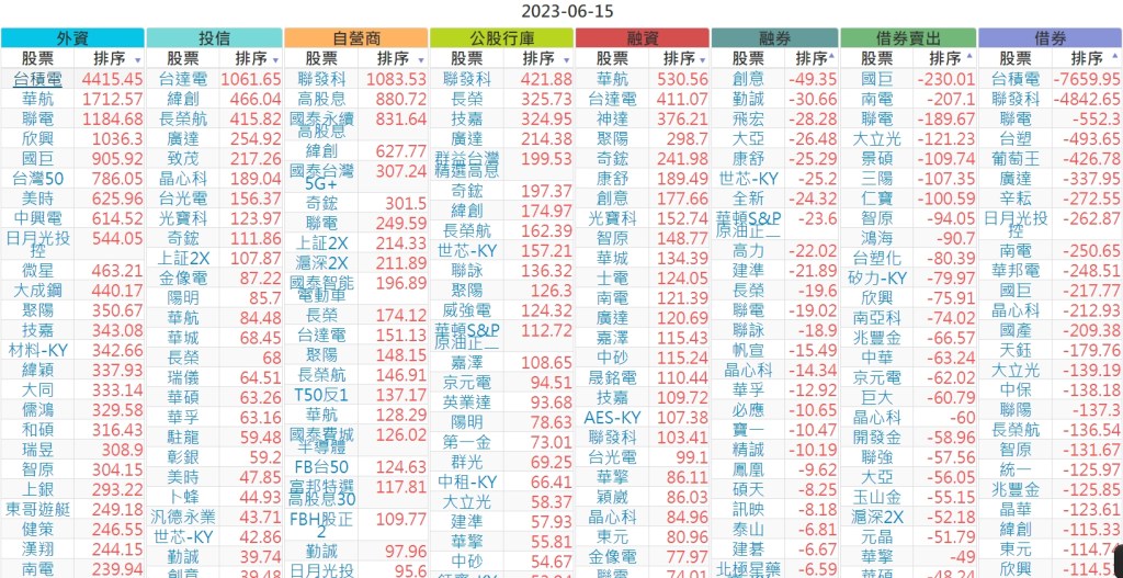 2023-0615上市【外資、投信】買賣超個股 2023-06-16 股狗網小編 投資誌-大盤 發表留言 投資達人APP上線囉!!!『安裝APP』 上市:【外資、投信】買超(依金額) (單位:百萬) 上市:【外資、投信】賣超(依金額) (單位:百萬) 上市:【外資、投信】買超(依張數) (單位:張數) 上市:【外資、投信】賣超(依張數) (單位:張數) 免責宣言 本網站文章所提供資訊僅供參考,並無任何推介買賣之意,投資人應自行承擔交易風險。 分享此文: 按一下即可分享至 X(在新視窗中開啟) X 按一下以分享至 Facebook(在新視窗中開啟) Facebook 喜歡 正在載入...