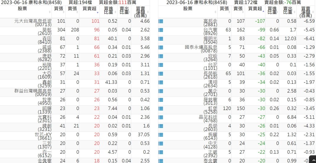 2023-0616關鍵券商買賣超 2023-06-17 股狗網小編 籌碼面每日資訊 發表留言 投資達人APP上線囉!!!『安裝APP』: 關鍵券商買賣超: 臺銀證券(1040): 台灣摩根士丹利(1470): 凱基台北(9268): 凱基信義(9216): 元大土城永寧(9875): 康和永和(845B) : 富邦建國(9658): 免責宣言 本網站文章所提供資訊僅供參考,並無任何推介買賣之意,投資人應自行承擔交易風險。 分享此文: 按一下即可分享至 X(在新視窗中開啟) X 按一下以分享至 Facebook(在新視窗中開啟) Facebook 喜歡 正在載入...