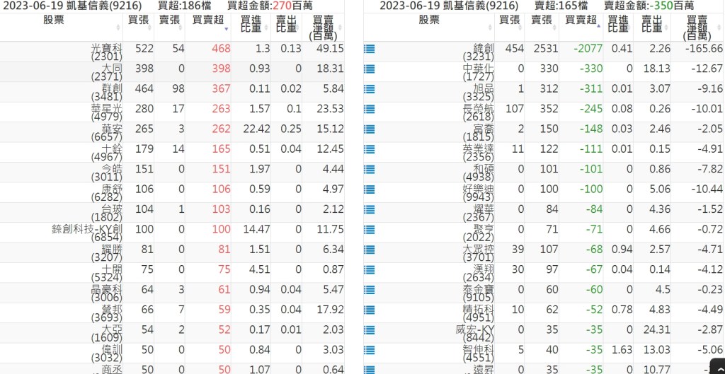 2023-0619關鍵券商買賣超 2023-06-20 股狗網小編 籌碼面每日資訊 發表留言 投資達人APP上線囉!!!『安裝APP』: 關鍵券商買賣超: 臺銀證券(1040): 台灣摩根士丹利(1470): 凱基台北(9268): 凱基信義(9216): 元大土城永寧(9875): 康和永和(845B) : 富邦建國(9658): 免責宣言 本網站文章所提供資訊僅供參考,並無任何推介買賣之意,投資人應自行承擔交易風險。 分享此文: 按一下即可分享至 X(在新視窗中開啟) X 按一下以分享至 Facebook(在新視窗中開啟) Facebook 喜歡 正在載入...