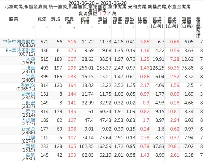 2023-0620主力買賣超個股 2023-06-21 股狗網小編 籌碼面每日資訊 發表留言 投資達人APP上線囉!!!『安裝APP』: 可參考下文 『如何查詢當沖、隔日沖分公司券商買賣』 主力當沖券商: 『元富虎尾』,『永豐金嘉義』,『統一嘉義』,『凱基嘉義』,『富邦嘉義』,『富邦虎尾』,『光和虎尾』,『凱基虎尾』,『永豐金虎尾』。 『當沖標的』 『買超股票』 『賣超股票』 免責宣言 本網站文章所提供資訊僅供參考,並無任何推介買賣之意,投資人應自行承擔交易風險。 分享此文: 按一下即可分享至 X(在新視窗中開啟) X 按一下以分享至 Facebook(在新視窗中開啟) Facebook 喜歡 正在載入...