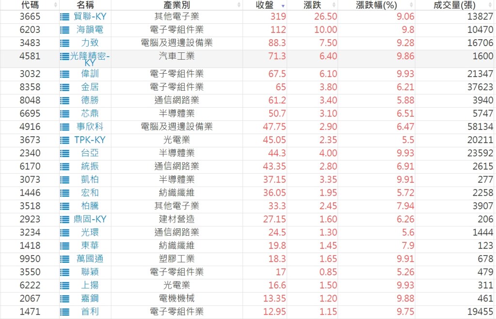 2023-0621股價創20日新高爆量上漲股 2023-06-22 股狗網小編 選股條件 發表留言 投資達人APP上線囉!!!『安裝APP』: 利用股狗選股的選股條件可以【挑選突破20日新高,爆量上漲起漲點股票】 1.股狗選股 https://www.stockdog.com.tw 2.選股條件: a.收盤價創20日新高 b.當日漲幅 > 2% C.成交量大於5日均量2倍 免責宣言 本網站文章所提供資訊僅供參考,並無任何推介買賣之意,投資人應自行承擔交易風險。 分享此文: 按一下即可分享至 X(在新視窗中開啟) X 按一下以分享至 Facebook(在新視窗中開啟) Facebook 喜歡 正在載入...