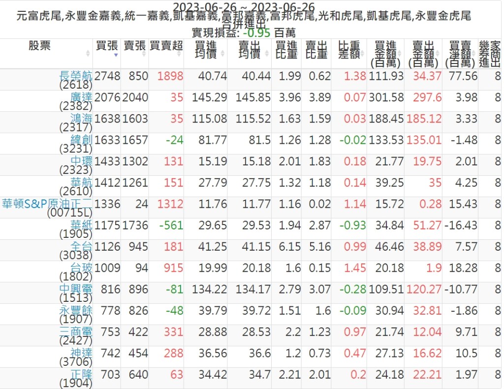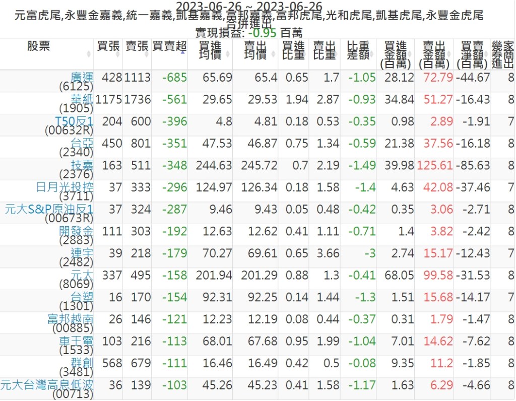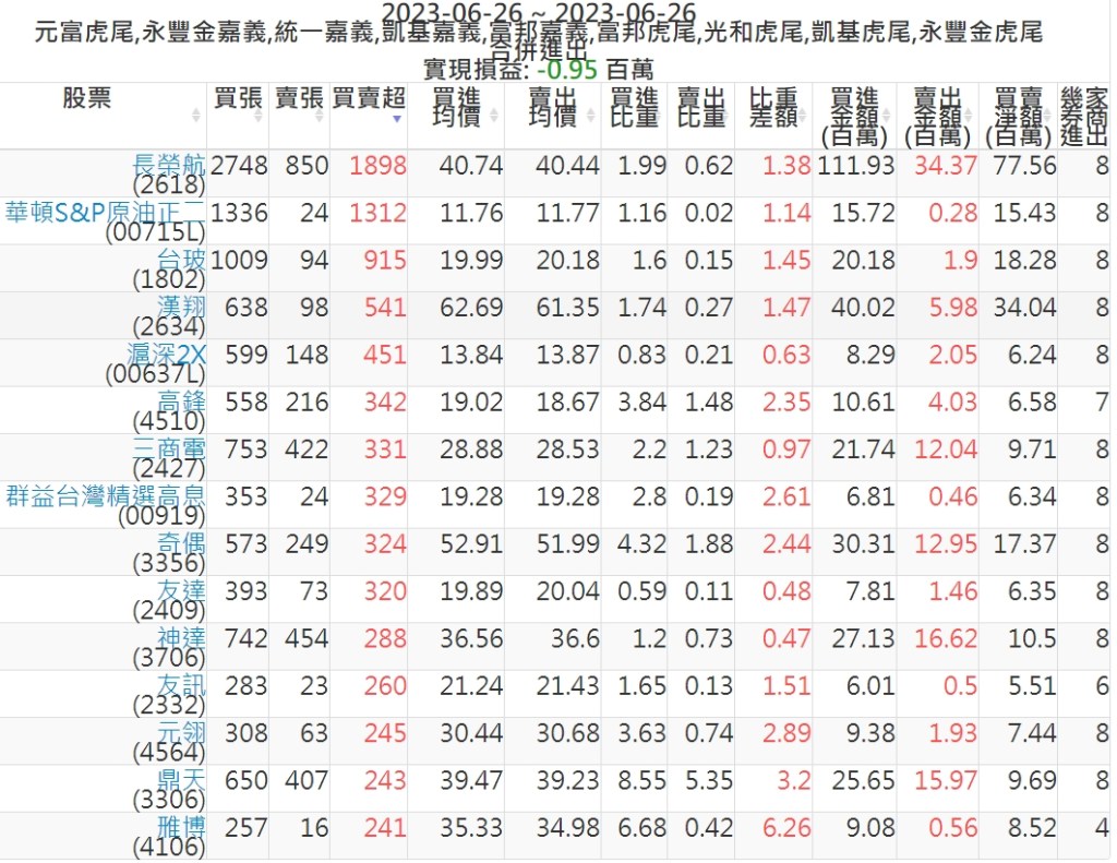 2023-0626主力買賣超個股 2023-06-27 股狗網小編 籌碼面每日資訊 發表留言 投資達人APP上線囉!!!『安裝APP』: 可參考下文 『如何查詢當沖、隔日沖分公司券商買賣』 主力當沖券商: 『元富虎尾』,『永豐金嘉義』,『統一嘉義』,『凱基嘉義』,『富邦嘉義』,『富邦虎尾』,『光和虎尾』,『凱基虎尾』,『永豐金虎尾』。 『當沖標的』 『買超股票』 『賣超股票』 免責宣言 本網站文章所提供資訊僅供參考,並無任何推介買賣之意,投資人應自行承擔交易風險。 分享此文: 按一下即可分享至 X(在新視窗中開啟) X 按一下以分享至 Facebook(在新視窗中開啟) Facebook 喜歡 正在載入...