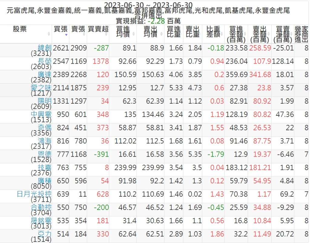 2023-0630主力買賣超個股 2023-07-01 股狗網小編 籌碼面每日資訊 發表留言 投資達人APP上線囉!!!『安裝APP』: 可參考下文 『如何查詢當沖、隔日沖分公司券商買賣』 主力當沖券商: 『元富虎尾』,『永豐金嘉義』,『統一嘉義』,『凱基嘉義』,『富邦嘉義』,『富邦虎尾』,『光和虎尾』,『凱基虎尾』,『永豐金虎尾』。 『當沖標的』 『買超股票』 『賣超股票』 免責宣言 本網站文章所提供資訊僅供參考,並無任何推介買賣之意,投資人應自行承擔交易風險。 分享此文: 按一下即可分享至 X(在新視窗中開啟) X 按一下以分享至 Facebook(在新視窗中開啟) Facebook 喜歡 正在載入...
