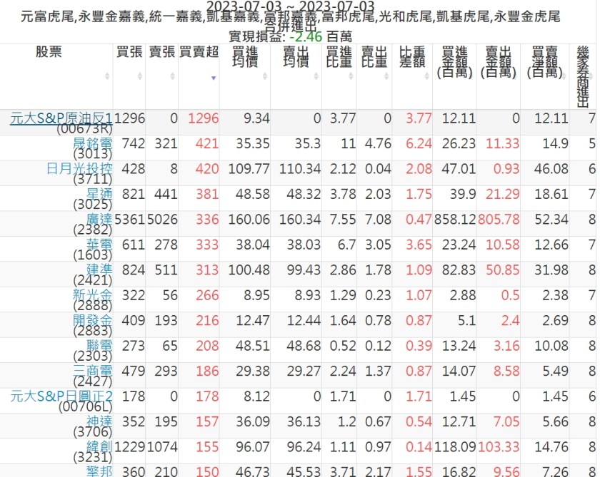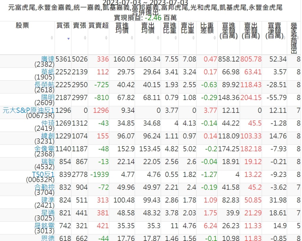 2023-0703主力買賣超個股 2023-07-04 股狗網小編 籌碼面每日資訊 發表留言 投資達人APP上線囉!!!『安裝APP』: 可參考下文 『如何查詢當沖、隔日沖分公司券商買賣』 主力當沖券商: 『元富虎尾』,『永豐金嘉義』,『統一嘉義』,『凱基嘉義』,『富邦嘉義』,『富邦虎尾』,『光和虎尾』,『凱基虎尾』,『永豐金虎尾』。 『當沖標的』 『買超股票』 『賣超股票』 免責宣言 本網站文章所提供資訊僅供參考,並無任何推介買賣之意,投資人應自行承擔交易風險。 分享此文: 按一下即可分享至 X(在新視窗中開啟) X 按一下以分享至 Facebook(在新視窗中開啟) Facebook 喜歡 正在載入...