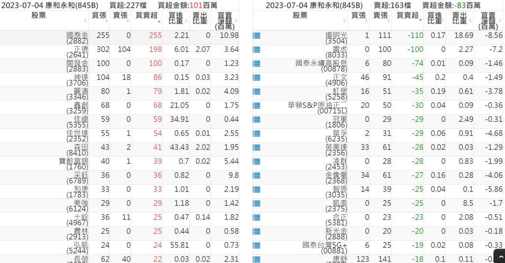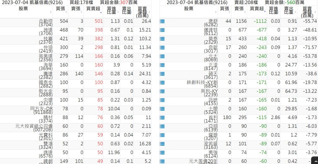 2023-0704關鍵券商買賣超 2023-07-05 股狗網小編 籌碼面每日資訊 發表留言 投資達人APP上線囉!!!『安裝APP』: 關鍵券商買賣超: 臺銀證券(1040): 台灣摩根士丹利(1470): 凱基台北(9268): 凱基信義(9216): 元大土城永寧(9875): 康和永和(845B) : 富邦建國(9658): 免責宣言 本網站文章所提供資訊僅供參考,並無任何推介買賣之意,投資人應自行承擔交易風險。 分享此文: 按一下即可分享至 X(在新視窗中開啟) X 按一下以分享至 Facebook(在新視窗中開啟) Facebook 喜歡 正在載入...