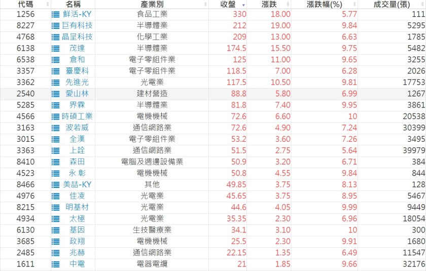 2023-0705股價創20日新高爆量上漲股 2023-07-06 股狗網小編 選股條件 發表留言 投資達人APP上線囉!!!『安裝APP』: 利用股狗選股的選股條件可以【挑選突破20日新高,爆量上漲起漲點股票】 1.股狗選股 https://www.stockdog.com.tw 2.選股條件: a.收盤價創20日新高 b.當日漲幅 > 2% C.成交量大於5日均量2倍 免責宣言 本網站文章所提供資訊僅供參考,並無任何推介買賣之意,投資人應自行承擔交易風險。 分享此文: 按一下即可分享至 X(在新視窗中開啟) X 按一下以分享至 Facebook(在新視窗中開啟) Facebook 喜歡 正在載入...
