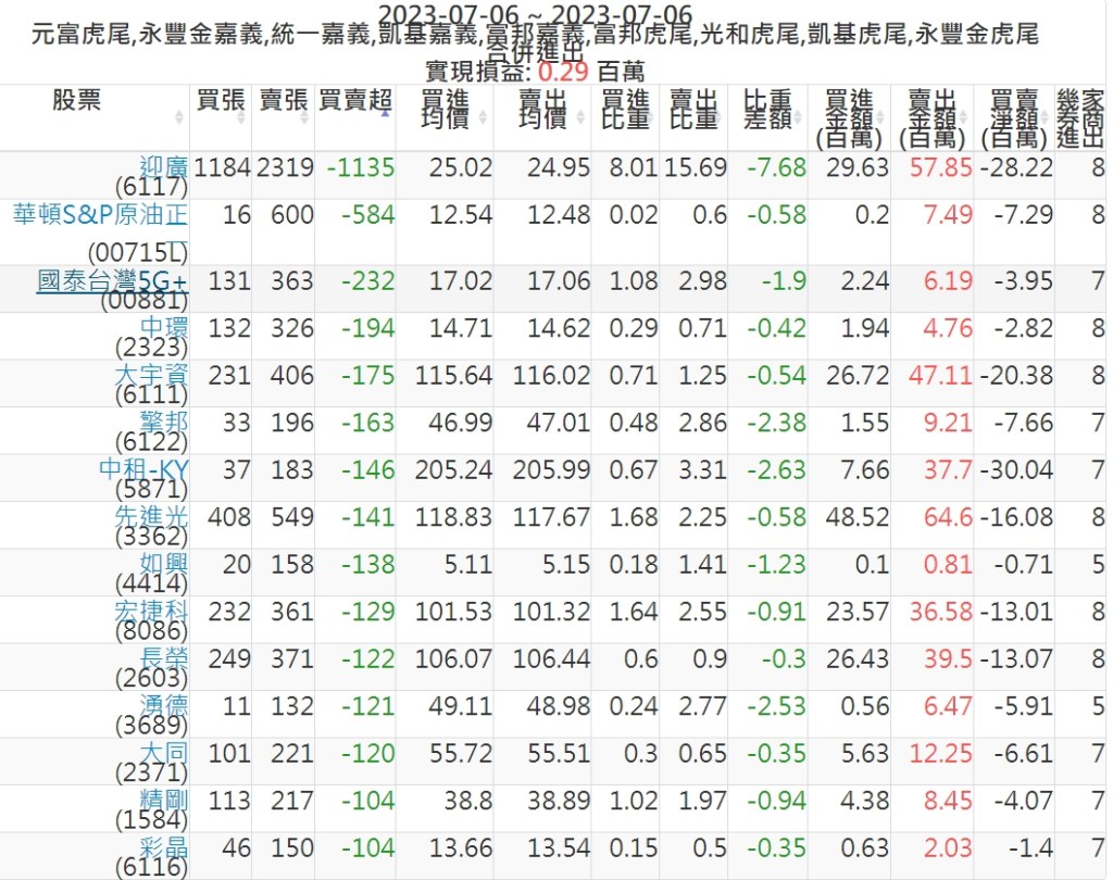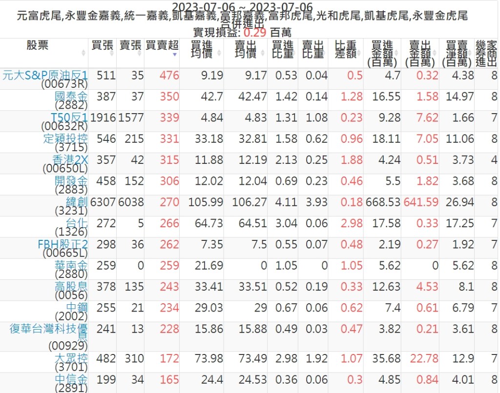 2023-0706主力買賣超個股 2023-07-07 股狗網小編 籌碼面每日資訊 發表留言 投資達人APP上線囉!!!『安裝APP』: 可參考下文 『如何查詢當沖、隔日沖分公司券商買賣』 主力當沖券商: 『元富虎尾』,『永豐金嘉義』,『統一嘉義』,『凱基嘉義』,『富邦嘉義』,『富邦虎尾』,『光和虎尾』,『凱基虎尾』,『永豐金虎尾』。 『當沖標的』 『買超股票』 『賣超股票』 免責宣言 本網站文章所提供資訊僅供參考,並無任何推介買賣之意,投資人應自行承擔交易風險。 分享此文: 按一下即可分享至 X(在新視窗中開啟) X 按一下以分享至 Facebook(在新視窗中開啟) Facebook 喜歡 正在載入...