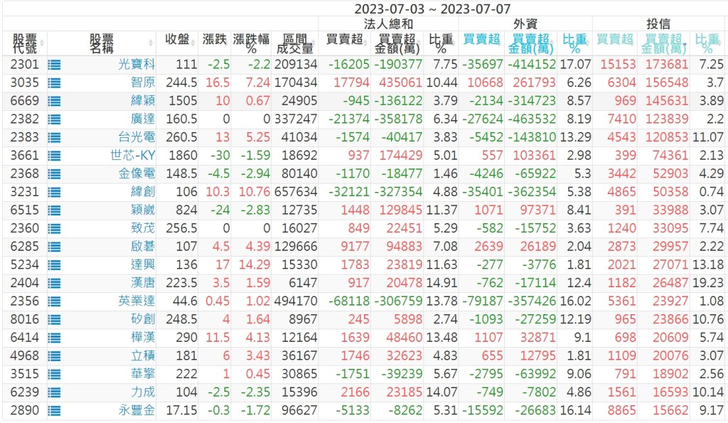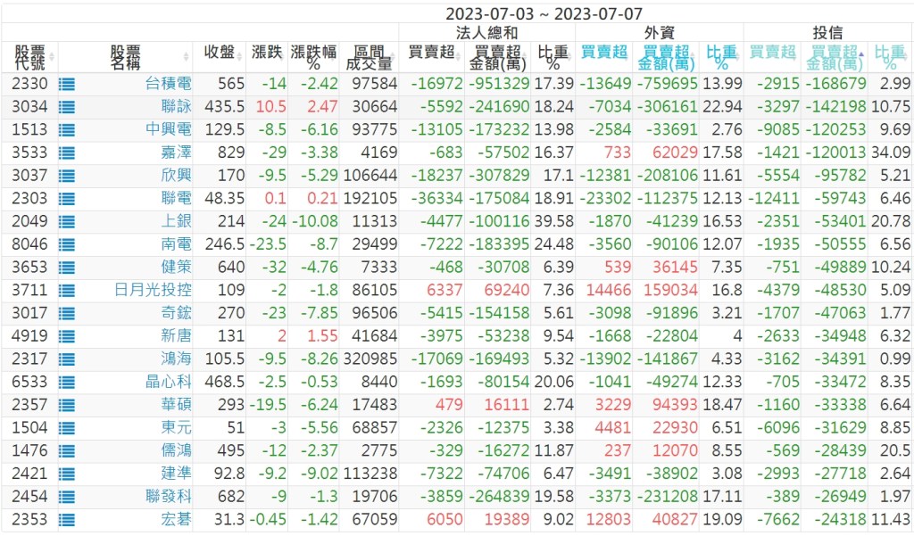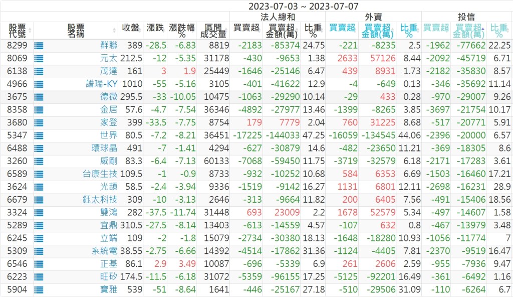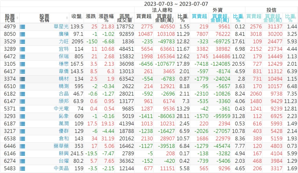 2023/07/03~2023/07/07近5日【投信】買賣超個股 2023-07-09 股狗網小編 投資誌-大盤 發表留言 投資達人APP上線囉!!!『安裝APP』: 【上市投信買超個股】(以金額排行,單位:萬) 【上市投信賣超個股】(以金額排行,單位:萬) 【上櫃投信買超個股】(以金額排行,單位:萬) 【上櫃投信賣超個股】(以金額排行,單位:萬) 免責宣言 本網站文章所提供資訊僅供參考,並無任何推介買賣之意,投資人應自行承擔交易風險。 分享此文: 按一下即可分享至 X(在新視窗中開啟) X 按一下以分享至 Facebook(在新視窗中開啟) Facebook 喜歡 正在載入...
