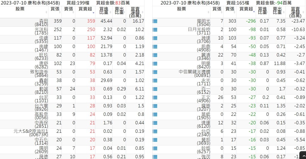 2023-0710關鍵券商買賣超 2023-07-11 股狗網小編 籌碼面每日資訊 發表留言 投資達人APP上線囉!!!『安裝APP』: 關鍵券商買賣超: 臺銀證券(1040): 台灣摩根士丹利(1470): 凱基台北(9268): 凱基信義(9216): 元大土城永寧(9875): 康和永和(845B) : 富邦建國(9658): 免責宣言 本網站文章所提供資訊僅供參考,並無任何推介買賣之意,投資人應自行承擔交易風險。 分享此文: 按一下即可分享至 X(在新視窗中開啟) X 按一下以分享至 Facebook(在新視窗中開啟) Facebook 喜歡 正在載入...