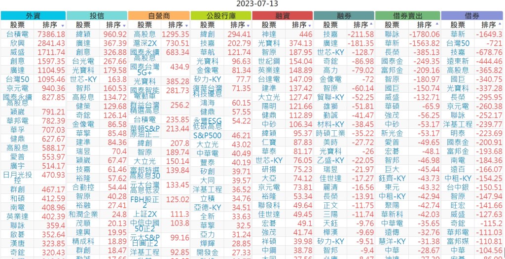 2023-0713上市【外資、投信】買賣超個股 2023-07-14 股狗網小編 投資誌-大盤 發表留言 投資達人APP上線囉!!!『安裝APP』 上市:【外資、投信】買超(依金額) (單位:百萬) 上市:【外資、投信】賣超(依金額) (單位:百萬) 上市:【外資、投信】買超(依張數) (單位:張數) 上市:【外資、投信】賣超(依張數) (單位:張數) 免責宣言 本網站文章所提供資訊僅供參考,並無任何推介買賣之意,投資人應自行承擔交易風險。 分享此文: 按一下即可分享至 X(在新視窗中開啟) X 按一下以分享至 Facebook(在新視窗中開啟) Facebook 喜歡 正在載入...