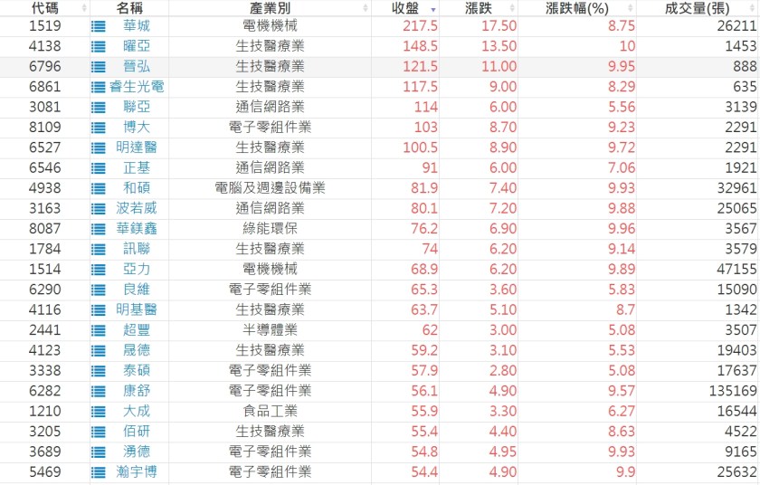 2023-0717股價創20日新高爆量上漲股 2023-07-18 股狗網小編 選股條件 發表留言 投資達人APP上線囉!!!『安裝APP』: 利用股狗選股的選股條件可以【挑選突破20日新高,爆量上漲起漲點股票】 1.股狗選股 https://www.stockdog.com.tw 2.選股條件: a.收盤價創20日新高 b.當日漲幅 > 2% C.成交量大於5日均量2倍 免責宣言 本網站文章所提供資訊僅供參考,並無任何推介買賣之意,投資人應自行承擔交易風險。 分享此文: 按一下即可分享至 X(在新視窗中開啟) X 按一下以分享至 Facebook(在新視窗中開啟) Facebook 喜歡 正在載入...