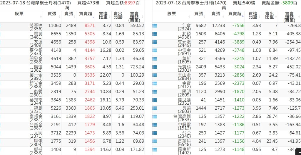 2023-0718關鍵券商買賣超 2023-07-19 股狗網小編 籌碼面每日資訊 發表留言 投資達人APP上線囉!!!『安裝APP』: 關鍵券商買賣超: 臺銀證券(1040): 台灣摩根士丹利(1470): 凱基台北(9268): 凱基信義(9216): 元大土城永寧(9875): 康和永和(845B) : 富邦建國(9658): 免責宣言 本網站文章所提供資訊僅供參考,並無任何推介買賣之意,投資人應自行承擔交易風險。 分享此文: 按一下即可分享至 X(在新視窗中開啟) X 按一下以分享至 Facebook(在新視窗中開啟) Facebook 喜歡 正在載入...