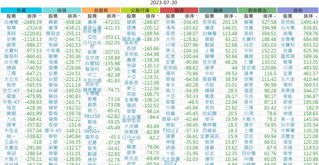 2023-0720上市【外資、投信】買賣超個股 2023-07-21 股狗網小編 投資誌-大盤 發表留言 投資達人APP上線囉!!!『安裝APP』 上市:【外資、投信】買超(依金額) (單位:百萬) 上市:【外資、投信】賣超(依金額) (單位:百萬) 上市:【外資、投信】買超(依張數) (單位:張數) 上市:【外資、投信】賣超(依張數) (單位:張數) 免責宣言 本網站文章所提供資訊僅供參考,並無任何推介買賣之意,投資人應自行承擔交易風險。 分享此文: 按一下即可分享至 X(在新視窗中開啟) X 按一下以分享至 Facebook(在新視窗中開啟) Facebook 喜歡 正在載入...