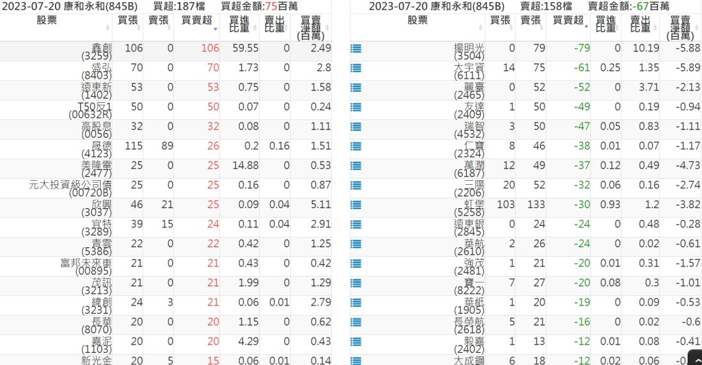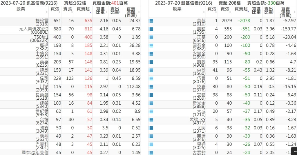 2023-0720關鍵券商買賣超 2023-07-21 股狗網小編 籌碼面每日資訊 發表留言 投資達人APP上線囉!!!『安裝APP』: 關鍵券商買賣超: 臺銀證券(1040): 台灣摩根士丹利(1470): 凱基台北(9268): 凱基信義(9216): 元大土城永寧(9875): 康和永和(845B) : 富邦建國(9658): 免責宣言 本網站文章所提供資訊僅供參考,並無任何推介買賣之意,投資人應自行承擔交易風險。 分享此文: 按一下即可分享至 X(在新視窗中開啟) X 按一下以分享至 Facebook(在新視窗中開啟) Facebook 喜歡 正在載入...