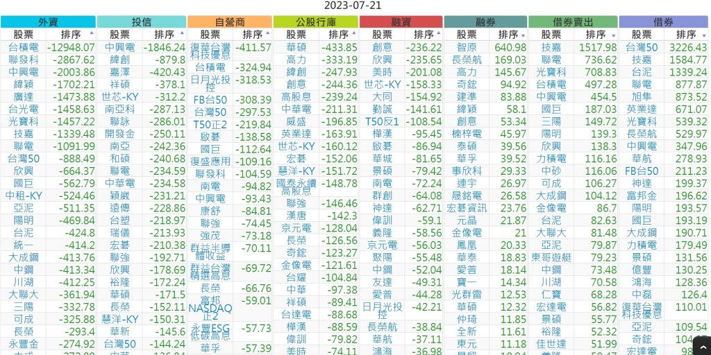 2023-0721上市【外資、投信】買賣超個股 2023-07-22 股狗網小編 投資誌-大盤 發表留言 投資達人APP上線囉!!!『安裝APP』 上市:【外資、投信】買超(依金額) (單位:百萬) 上市:【外資、投信】賣超(依金額) (單位:百萬) 上市:【外資、投信】買超(依張數) (單位:張數) 上市:【外資、投信】賣超(依張數) (單位:張數) 免責宣言 本網站文章所提供資訊僅供參考,並無任何推介買賣之意,投資人應自行承擔交易風險。 分享此文: 按一下即可分享至 X(在新視窗中開啟) X 按一下以分享至 Facebook(在新視窗中開啟) Facebook 喜歡 正在載入...