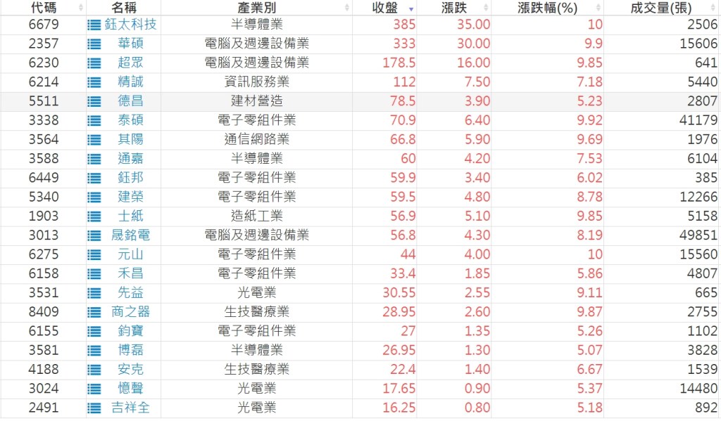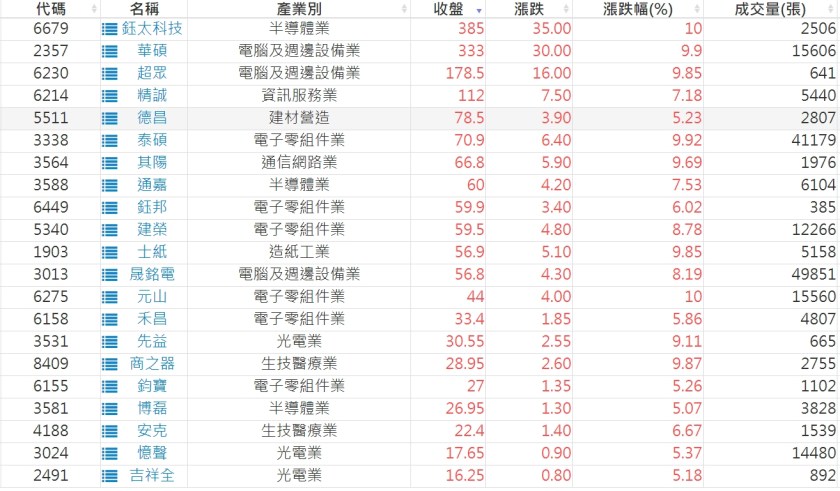 2023-0721股價創20日新高爆量上漲股 2023-07-22 股狗網小編 選股條件 發表留言 投資達人APP上線囉!!!『安裝APP』: 利用股狗選股的選股條件可以【挑選突破20日新高,爆量上漲起漲點股票】 1.股狗選股 https://www.stockdog.com.tw 2.選股條件: a.收盤價創20日新高 b.當日漲幅 > 2% C.成交量大於5日均量2倍 免責宣言 本網站文章所提供資訊僅供參考,並無任何推介買賣之意,投資人應自行承擔交易風險。 分享此文: 按一下即可分享至 X(在新視窗中開啟) X 按一下以分享至 Facebook(在新視窗中開啟) Facebook 喜歡 正在載入...