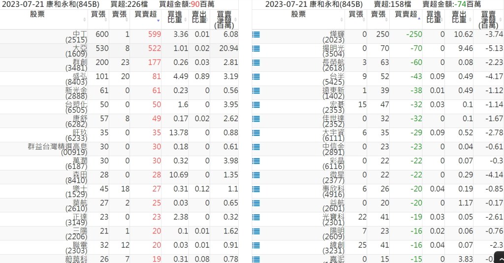 2023-0721關鍵券商買賣超 2023-07-22 股狗網小編 籌碼面每日資訊 發表留言 投資達人APP上線囉!!!『安裝APP』: 關鍵券商買賣超: 臺銀證券(1040): 台灣摩根士丹利(1470): 凱基台北(9268): 凱基信義(9216): 元大土城永寧(9875): 康和永和(845B) : 富邦建國(9658): 免責宣言 本網站文章所提供資訊僅供參考,並無任何推介買賣之意,投資人應自行承擔交易風險。 分享此文: 按一下即可分享至 X(在新視窗中開啟) X 按一下以分享至 Facebook(在新視窗中開啟) Facebook 喜歡 正在載入...