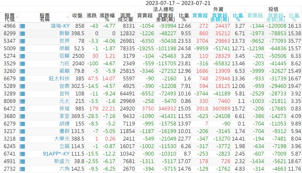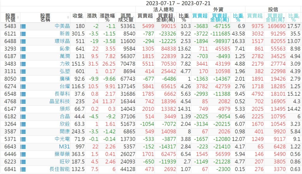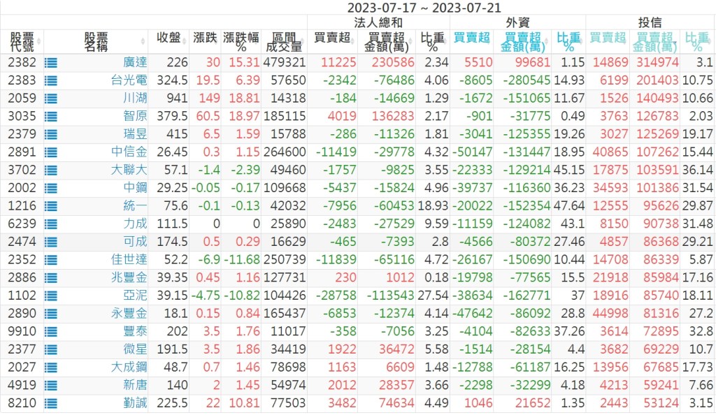 2023/07/17~2023/07/21近5日【投信】買賣超個股 2023-07-23 股狗網小編 投資誌-大盤 發表留言 投資達人APP上線囉!!!『安裝APP』: 【上市投信買超個股】(以金額排行,單位:萬) 【上市投信賣超個股】(以金額排行,單位:萬) 【上櫃投信買超個股】(以金額排行,單位:萬) 【上櫃投信賣超個股】(以金額排行,單位:萬) 免責宣言 本網站文章所提供資訊僅供參考,並無任何推介買賣之意,投資人應自行承擔交易風險。 分享此文: 按一下即可分享至 X(在新視窗中開啟) X 按一下以分享至 Facebook(在新視窗中開啟) Facebook 喜歡 正在載入...