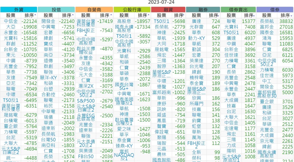 2023-0724上市【外資、投信】買賣超個股 2023-07-25 股狗網小編 投資誌-大盤 發表留言 投資達人APP上線囉!!!『安裝APP』 上市:【外資、投信】買超(依金額) (單位:百萬) 上市:【外資、投信】賣超(依金額) (單位:百萬) 上市:【外資、投信】買超(依張數) (單位:張數) 上市:【外資、投信】賣超(依張數) (單位:張數) 免責宣言 本網站文章所提供資訊僅供參考,並無任何推介買賣之意,投資人應自行承擔交易風險。 分享此文: 按一下即可分享至 X(在新視窗中開啟) X 按一下以分享至 Facebook(在新視窗中開啟) Facebook 喜歡 正在載入...