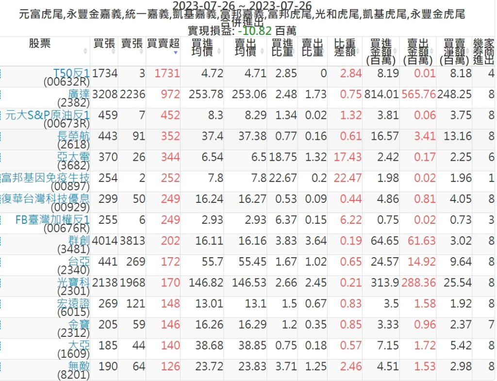 2023-0726主力買賣超個股 2023-07-27 股狗網小編 籌碼面每日資訊 發表留言 投資達人APP上線囉!!!『安裝APP』: 可參考下文 『如何查詢當沖、隔日沖分公司券商買賣』 主力當沖券商: 『元富虎尾』,『永豐金嘉義』,『統一嘉義』,『凱基嘉義』,『富邦嘉義』,『富邦虎尾』,『光和虎尾』,『凱基虎尾』,『永豐金虎尾』。 『當沖標的』 『買超股票』 『賣超股票』 免責宣言 本網站文章所提供資訊僅供參考,並無任何推介買賣之意,投資人應自行承擔交易風險。 分享此文: 按一下即可分享至 X(在新視窗中開啟) X 按一下以分享至 Facebook(在新視窗中開啟) Facebook 喜歡 正在載入...