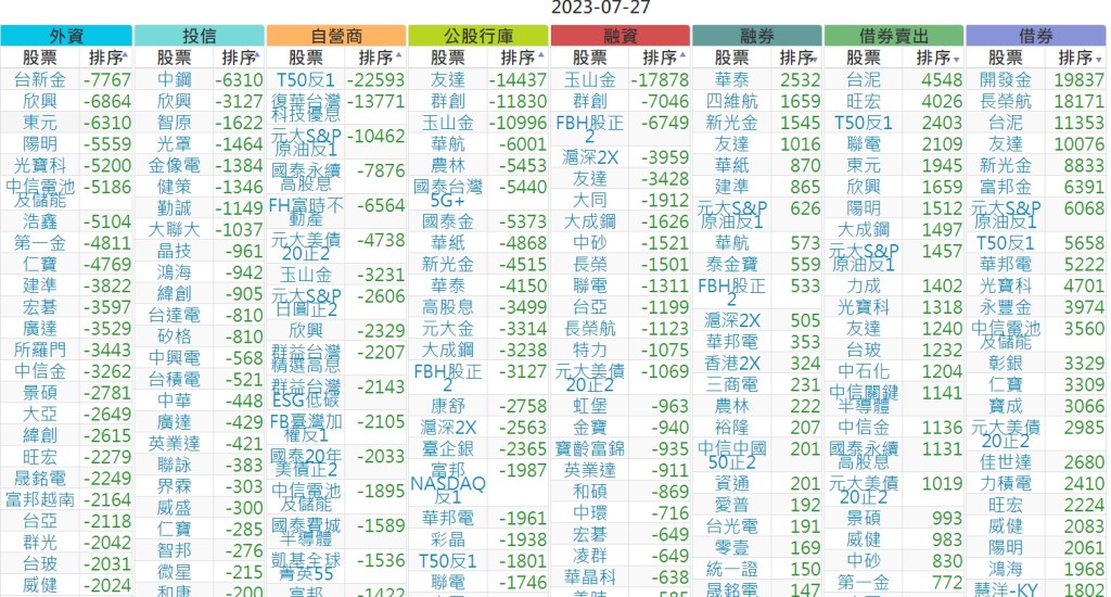 2023-0727上市【外資、投信】買賣超個股 2023-07-28 股狗網小編 投資誌-大盤 發表留言 投資達人APP上線囉!!!『安裝APP』 上市:【外資、投信】買超(依金額) (單位:百萬) 上市:【外資、投信】賣超(依金額) (單位:百萬) 上市:【外資、投信】買超(依張數) (單位:張數) 上市:【外資、投信】賣超(依張數) (單位:張數) 免責宣言 本網站文章所提供資訊僅供參考,並無任何推介買賣之意,投資人應自行承擔交易風險。 分享此文: 按一下即可分享至 X(在新視窗中開啟) X 按一下以分享至 Facebook(在新視窗中開啟) Facebook 喜歡 正在載入...
