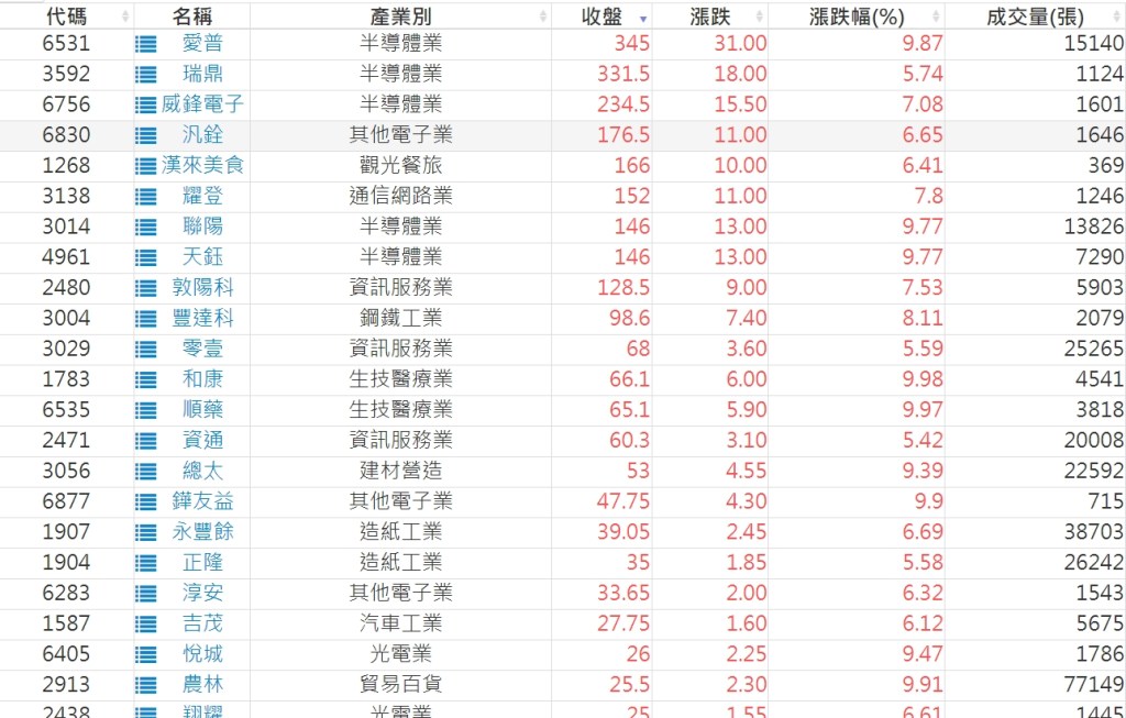 2023-0727股價創20日新高爆量上漲股 2023-07-28 股狗網小編 選股條件 發表留言 投資達人APP上線囉!!!『安裝APP』: 利用股狗選股的選股條件可以【挑選突破20日新高,爆量上漲起漲點股票】 1.股狗選股 https://www.stockdog.com.tw 2.選股條件: a.收盤價創20日新高 b.當日漲幅 > 2% C.成交量大於5日均量2倍 免責宣言 本網站文章所提供資訊僅供參考,並無任何推介買賣之意,投資人應自行承擔交易風險。 分享此文: 按一下即可分享至 X(在新視窗中開啟) X 按一下以分享至 Facebook(在新視窗中開啟) Facebook 喜歡 正在載入...