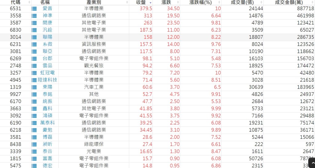 2023-0728股價創20日新高爆量上漲股 2023-07-29 股狗網小編 選股條件 發表留言 投資達人APP上線囉!!!『安裝APP』: 利用股狗選股的選股條件可以【挑選突破20日新高,爆量上漲起漲點股票】 1.股狗選股 https://www.stockdog.com.tw 2.選股條件: a.收盤價創20日新高 b.當日漲幅 > 2% C.成交量大於5日均量2倍 免責宣言 本網站文章所提供資訊僅供參考,並無任何推介買賣之意,投資人應自行承擔交易風險。 分享此文: 按一下即可分享至 X(在新視窗中開啟) X 按一下以分享至 Facebook(在新視窗中開啟) Facebook 喜歡 正在載入...