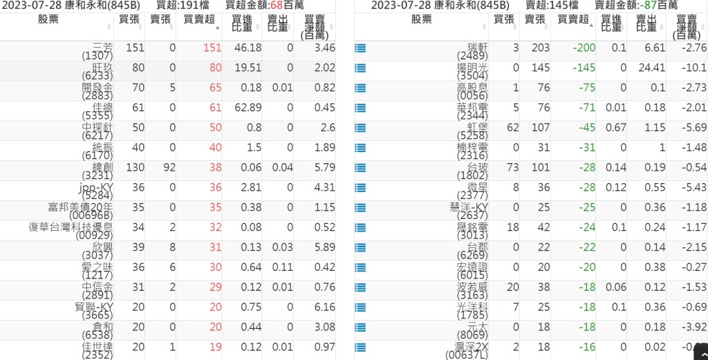2023-0728關鍵券商買賣超 2023-07-29 股狗網小編 籌碼面每日資訊 發表留言 投資達人APP上線囉!!!『安裝APP』: 關鍵券商買賣超: 臺銀證券(1040): 台灣摩根士丹利(1470): 凱基台北(9268): 凱基信義(9216): 元大土城永寧(9875): 康和永和(845B) : 富邦建國(9658): 免責宣言 本網站文章所提供資訊僅供參考,並無任何推介買賣之意,投資人應自行承擔交易風險。 分享此文: 按一下即可分享至 X(在新視窗中開啟) X 按一下以分享至 Facebook(在新視窗中開啟) Facebook 喜歡 正在載入...