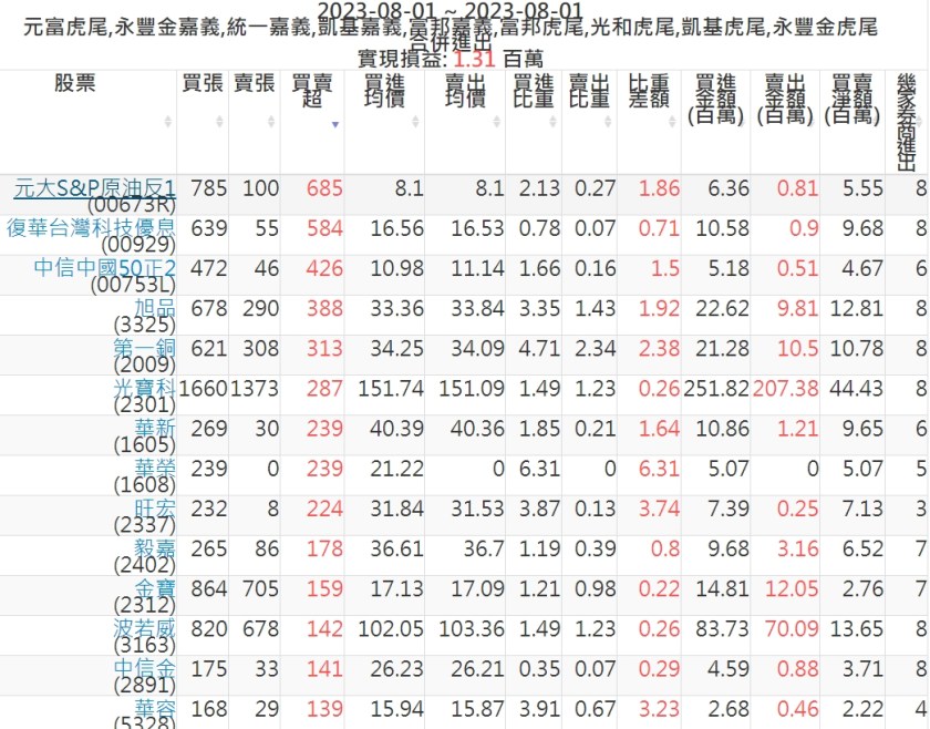 2023-0801主力買賣超個股 2023-08-02 股狗網小編 籌碼面每日資訊 發表留言 投資達人APP上線囉!!!『安裝APP』: 可參考下文 『如何查詢當沖、隔日沖分公司券商買賣』 主力當沖券商: 『元富虎尾』,『永豐金嘉義』,『統一嘉義』,『凱基嘉義』,『富邦嘉義』,『富邦虎尾』,『光和虎尾』,『凱基虎尾』,『永豐金虎尾』。 『當沖標的』 『買超股票』 『賣超股票』 免責宣言 本網站文章所提供資訊僅供參考,並無任何推介買賣之意,投資人應自行承擔交易風險。 分享此文: 按一下即可分享至 X(在新視窗中開啟) X 按一下以分享至 Facebook(在新視窗中開啟) Facebook 喜歡 正在載入...