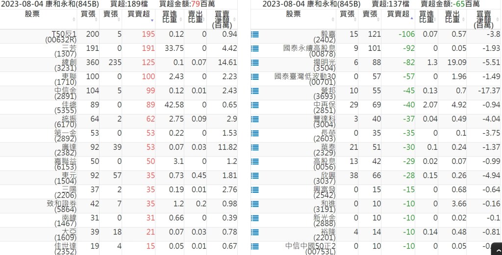 2023-0804關鍵券商買賣超 2023-08-05 股狗網小編 籌碼面每日資訊 發表留言 投資達人APP上線囉!!!『安裝APP』: 關鍵券商買賣超: 臺銀證券(1040): 台灣摩根士丹利(1470): 凱基台北(9268): 凱基信義(9216): 元大土城永寧(9875): 康和永和(845B) : 富邦建國(9658): 免責宣言 本網站文章所提供資訊僅供參考,並無任何推介買賣之意,投資人應自行承擔交易風險。 分享此文: 按一下即可分享至 X(在新視窗中開啟) X 按一下以分享至 Facebook(在新視窗中開啟) Facebook 喜歡 正在載入...