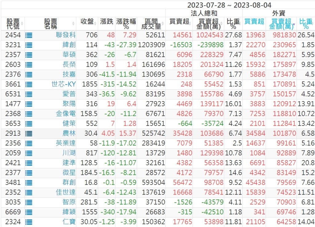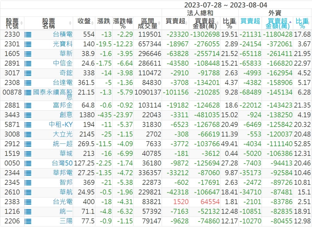 2023/07/28~2023/08/04近5日【外資】買賣超個股 2023-08-06 股狗網小編 投資誌-大盤 發表留言 投資達人APP上線囉!!!『安裝APP』: 外資本周累積【賣超】約308億元。 【上市外資買超個股】(以金額排行,單位:萬) 【上市外資賣超個股】(以金額排行,單位:萬) 【上櫃外資買超個股】(以金額排行,單位:萬) 【上櫃外資賣超個股】(以金額排行,單位:萬) 免責宣言 本網站文章所提供資訊僅供參考,並無任何推介買賣之意,投資人應自行承擔交易風險。 分享此文: 按一下即可分享至 X(在新視窗中開啟) X 按一下以分享至 Facebook(在新視窗中開啟) Facebook 喜歡 正在載入...
