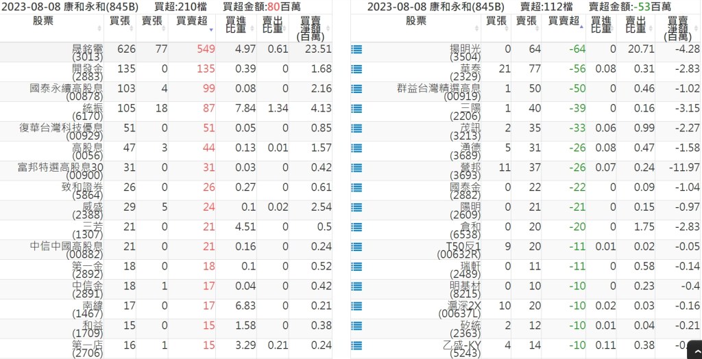 2023-0808關鍵券商買賣超 2023-08-09 股狗網小編 籌碼面每日資訊 發表留言 投資達人APP上線囉!!!『安裝APP』: 關鍵券商買賣超: 臺銀證券(1040): 台灣摩根士丹利(1470): 凱基台北(9268): 凱基信義(9216): 元大土城永寧(9875): 康和永和(845B) : 富邦建國(9658): 免責宣言 本網站文章所提供資訊僅供參考,並無任何推介買賣之意,投資人應自行承擔交易風險。 分享此文: 分享到 X(在新視窗中開啟) X 分享到 Facebook(在新視窗中開啟) Facebook 喜歡 正在載入...
