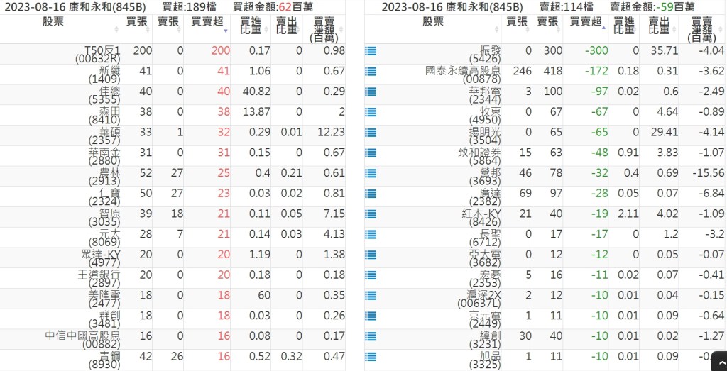 2023-0816關鍵券商買賣超 2023-08-17 股狗網小編 籌碼面每日資訊 發表留言 投資達人APP上線囉!!!『安裝APP』: 關鍵券商買賣超: 臺銀證券(1040): 台灣摩根士丹利(1470): 凱基台北(9268): 凱基信義(9216): 元大土城永寧(9875): 康和永和(845B) : 富邦建國(9658): 免責宣言 本網站文章所提供資訊僅供參考,並無任何推介買賣之意,投資人應自行承擔交易風險。 分享此文: 分享到 X(在新視窗中開啟) X 分享到 Facebook(在新視窗中開啟) Facebook 喜歡 正在載入...