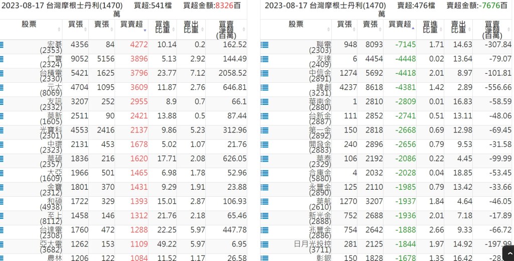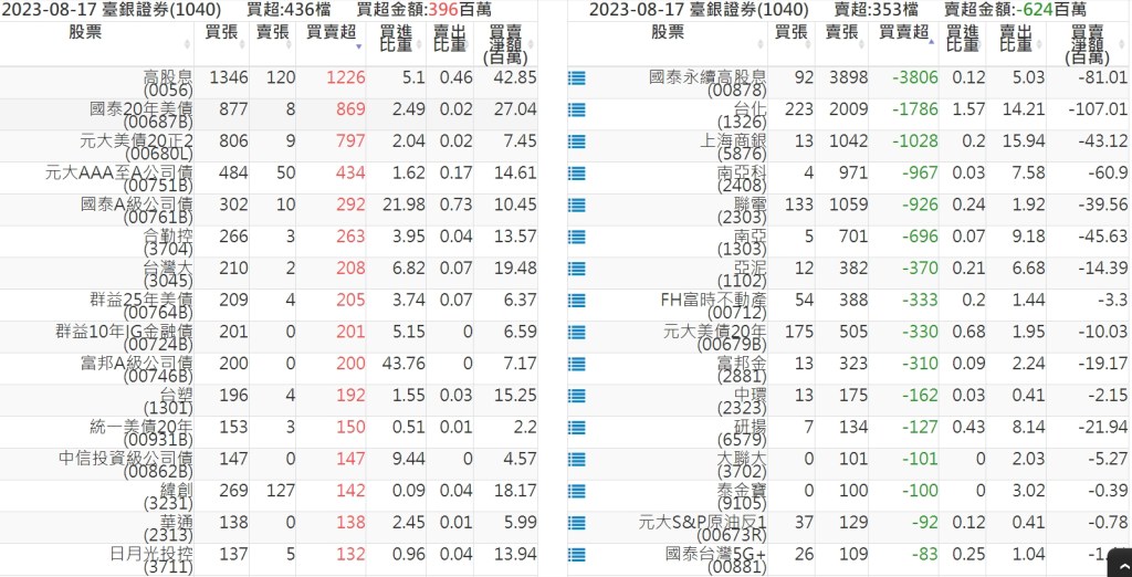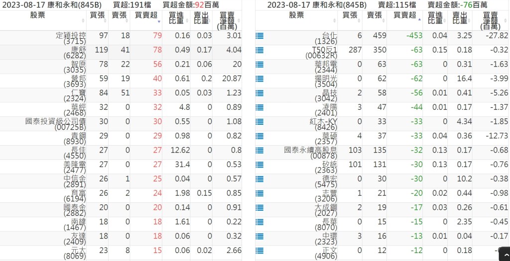 2023-0817關鍵券商買賣超 2023-08-18 股狗網小編 籌碼面每日資訊 發表留言 投資達人APP上線囉!!!『安裝APP』: 關鍵券商買賣超: 臺銀證券(1040): 台灣摩根士丹利(1470): 凱基台北(9268): 凱基信義(9216): 元大土城永寧(9875): 康和永和(845B) : 富邦建國(9658): 免責宣言 本網站文章所提供資訊僅供參考,並無任何推介買賣之意,投資人應自行承擔交易風險。 分享此文: 分享到 X(在新視窗中開啟) X 分享到 Facebook(在新視窗中開啟) Facebook 喜歡 正在載入...