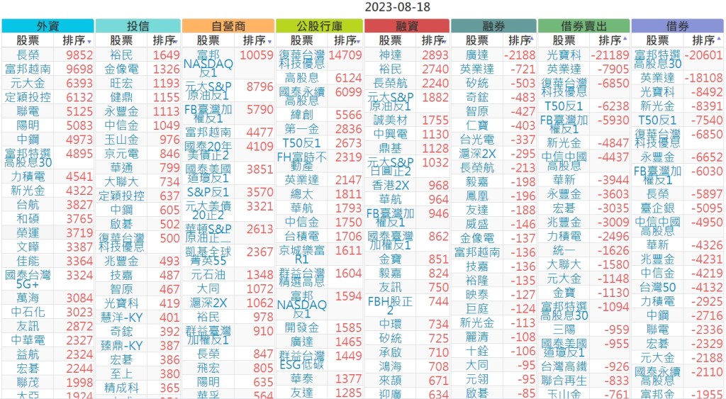 2023-0818上市【外資、投信】買賣超個股 2023-08-19 股狗網小編 投資誌-大盤 發表留言 投資達人APP上線囉!!!『安裝APP』 上市:【外資、投信】買超(依金額) (單位:百萬) 上市:【外資、投信】賣超(依金額) (單位:百萬) 上市:【外資、投信】買超(依張數) (單位:張數) 上市:【外資、投信】賣超(依張數) (單位:張數) 免責宣言 本網站文章所提供資訊僅供參考,並無任何推介買賣之意,投資人應自行承擔交易風險。 分享此文: 分享到 X(在新視窗中開啟) X 分享到 Facebook(在新視窗中開啟) Facebook 喜歡 正在載入...