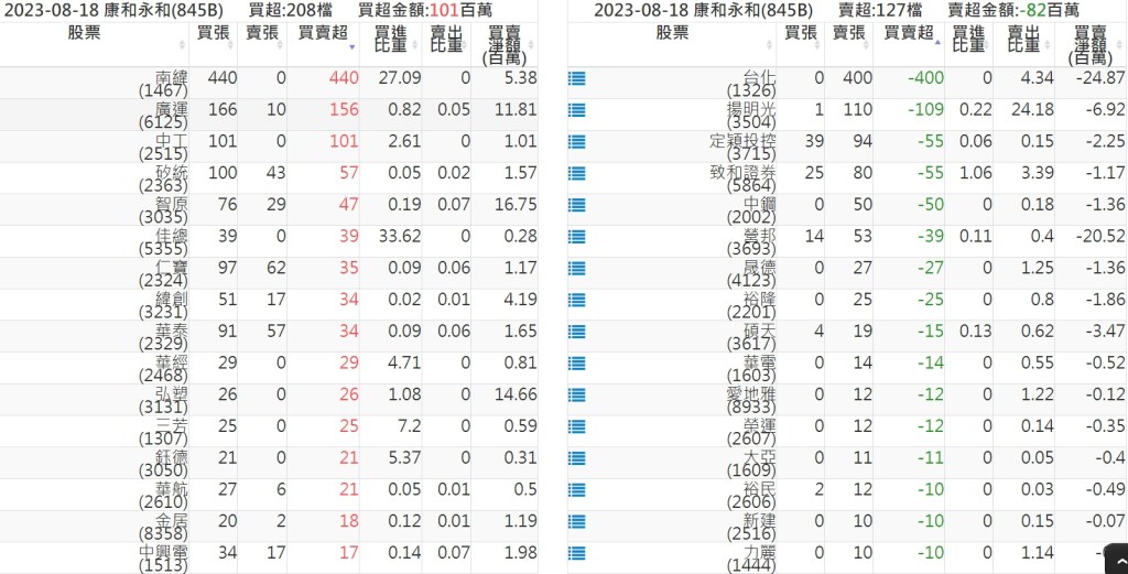 2023-0818關鍵券商買賣超 2023-08-19 股狗網小編 籌碼面每日資訊 發表留言 投資達人APP上線囉!!!『安裝APP』: 關鍵券商買賣超: 臺銀證券(1040): 台灣摩根士丹利(1470): 凱基台北(9268): 凱基信義(9216): 元大土城永寧(9875): 康和永和(845B) : 富邦建國(9658): 免責宣言 本網站文章所提供資訊僅供參考,並無任何推介買賣之意,投資人應自行承擔交易風險。 分享此文: 分享到 X(在新視窗中開啟) X 分享到 Facebook(在新視窗中開啟) Facebook 喜歡 正在載入...