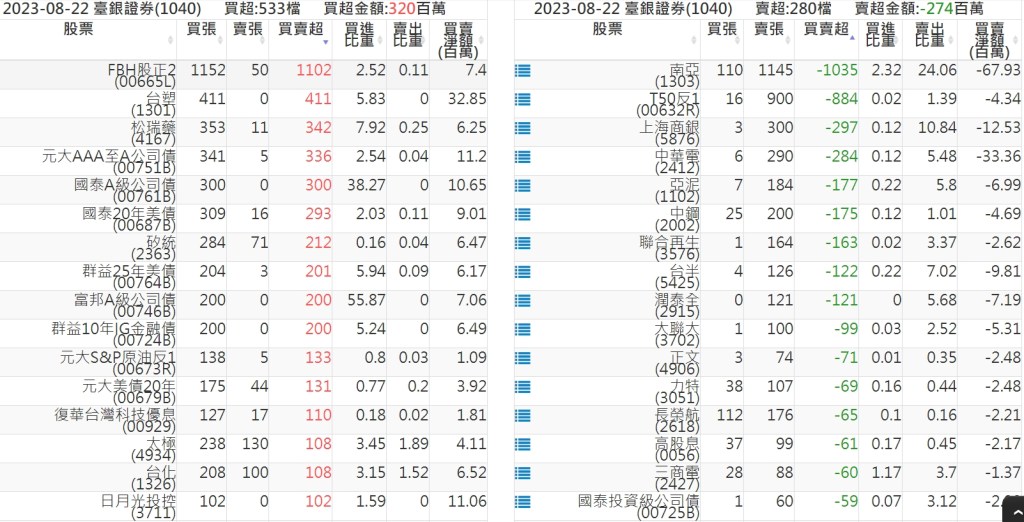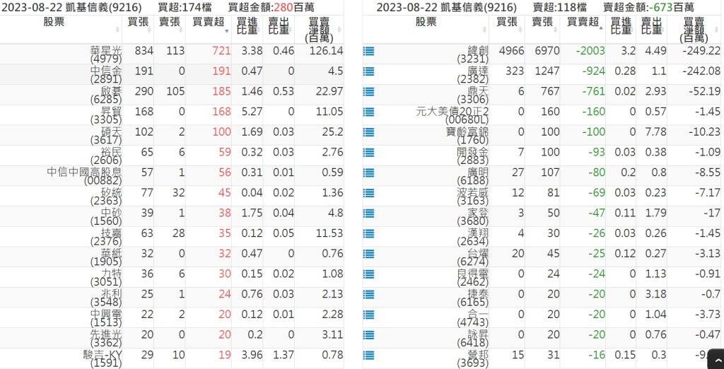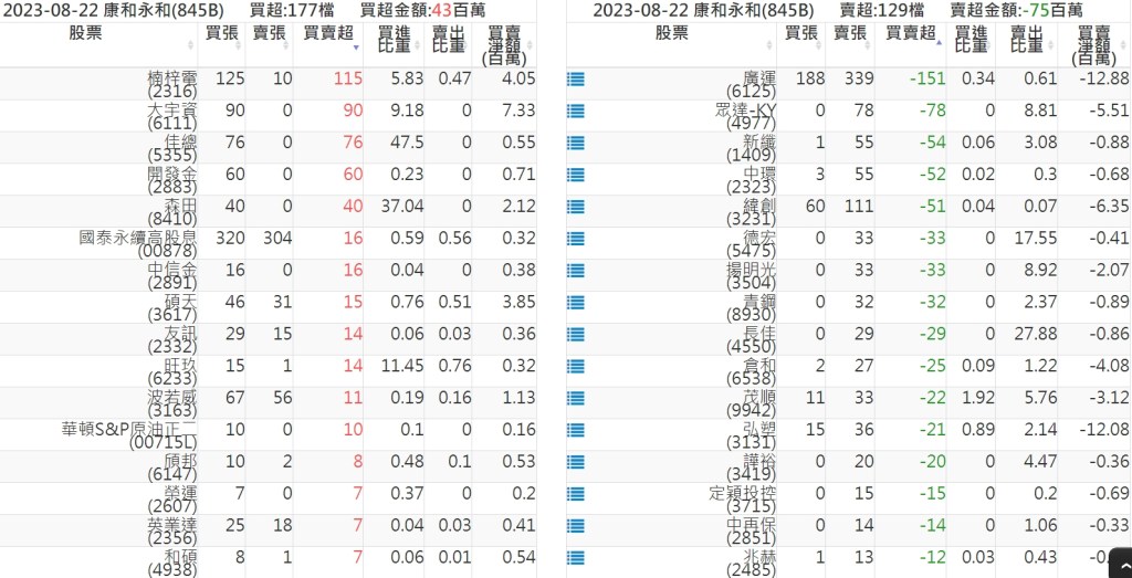 2023-0822關鍵券商買賣超 2023-08-23 股狗網小編 籌碼面每日資訊 發表留言 投資達人APP上線囉!!!『安裝APP』: 關鍵券商買賣超: 臺銀證券(1040): 台灣摩根士丹利(1470): 凱基台北(9268): 凱基信義(9216): 元大土城永寧(9875): 康和永和(845B) : 富邦建國(9658): 免責宣言 本網站文章所提供資訊僅供參考,並無任何推介買賣之意,投資人應自行承擔交易風險。 分享此文: 分享到 X(在新視窗中開啟) X 分享到 Facebook(在新視窗中開啟) Facebook 喜歡 正在載入...