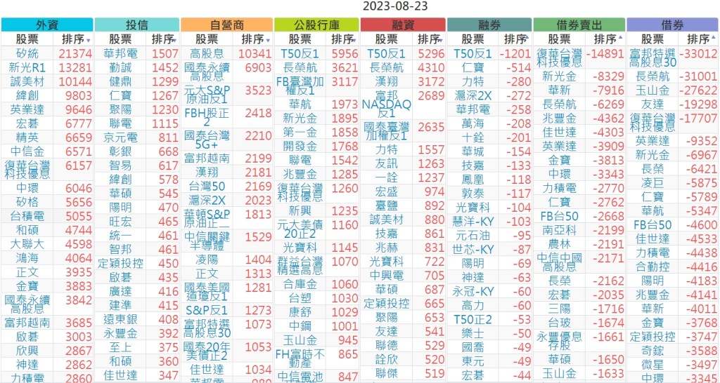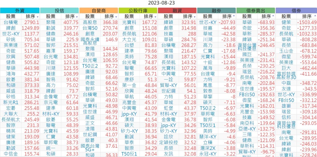 2023-0823上市【外資、投信】買賣超個股 2023-08-24 股狗網小編 投資誌-大盤 發表留言 投資達人APP上線囉!!!『安裝APP』 上市:【外資、投信】買超(依金額) (單位:百萬) 上市:【外資、投信】賣超(依金額) (單位:百萬) 上市:【外資、投信】買超(依張數) (單位:張數) 上市:【外資、投信】賣超(依張數) (單位:張數) 免責宣言 本網站文章所提供資訊僅供參考,並無任何推介買賣之意,投資人應自行承擔交易風險。 分享此文: 分享到 X(在新視窗中開啟) X 分享到 Facebook(在新視窗中開啟) Facebook 喜歡 正在載入...