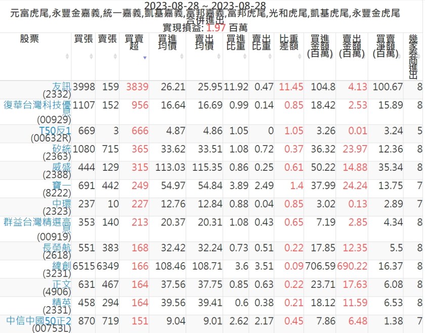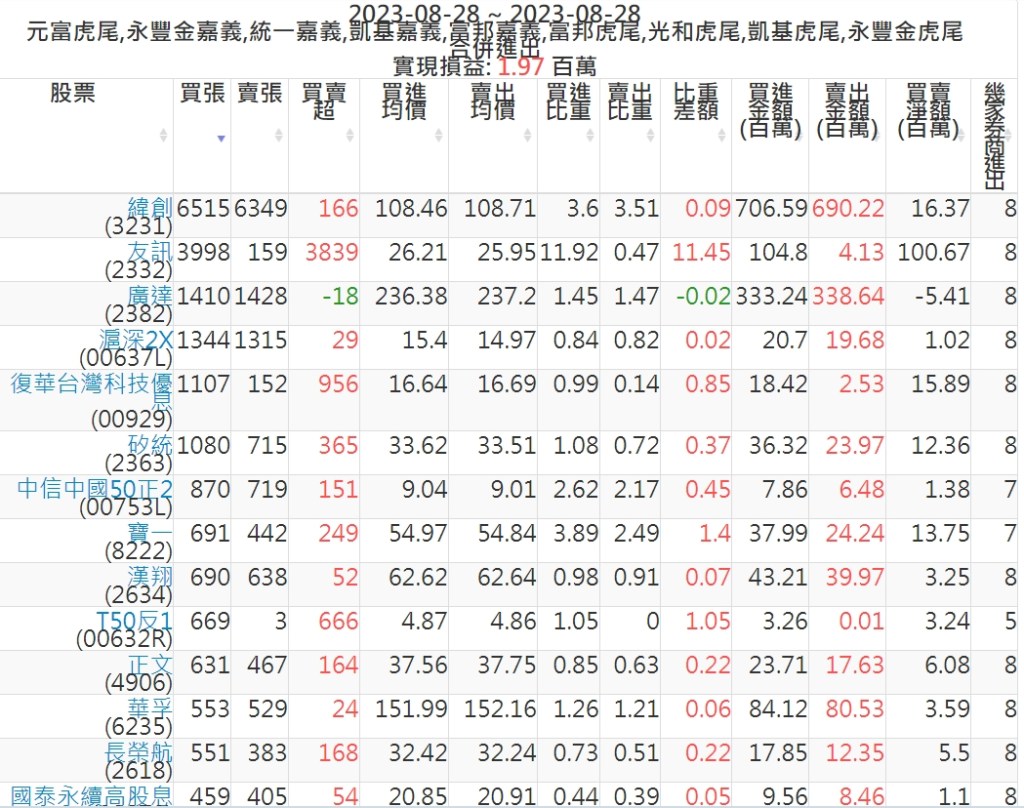 2023-0828主力買賣超個股 2023-08-29 股狗網小編 籌碼面每日資訊 發表留言 投資達人APP上線囉!!!『安裝APP』: 可參考下文 『如何查詢當沖、隔日沖分公司券商買賣』 主力當沖券商: 『元富虎尾』,『永豐金嘉義』,『統一嘉義』,『凱基嘉義』,『富邦嘉義』,『富邦虎尾』,『光和虎尾』,『凱基虎尾』,『永豐金虎尾』。 『當沖標的』 『買超股票』 『賣超股票』 免責宣言 本網站文章所提供資訊僅供參考,並無任何推介買賣之意,投資人應自行承擔交易風險。 分享此文: 分享到 X(在新視窗中開啟) X 分享到 Facebook(在新視窗中開啟) Facebook 喜歡 正在載入...