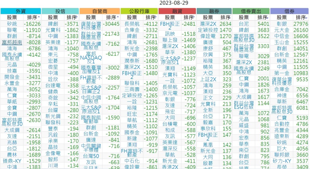 2023-0829上市【外資、投信】買賣超個股 2023-08-30 股狗網小編 投資誌-大盤 發表留言 投資達人APP上線囉!!!『安裝APP』 上市:【外資、投信】買超(依金額) (單位:百萬) 上市:【外資、投信】賣超(依金額) (單位:百萬) 上市:【外資、投信】買超(依張數) (單位:張數) 上市:【外資、投信】賣超(依張數) (單位:張數) 免責宣言 本網站文章所提供資訊僅供參考,並無任何推介買賣之意,投資人應自行承擔交易風險。 分享此文: 分享到 X(在新視窗中開啟) X 分享到 Facebook(在新視窗中開啟) Facebook 喜歡 正在載入...
