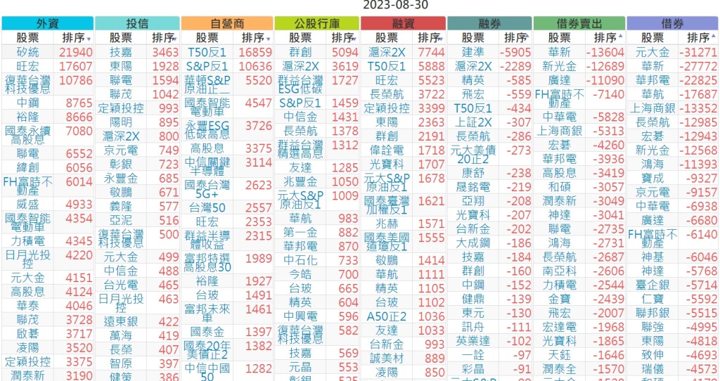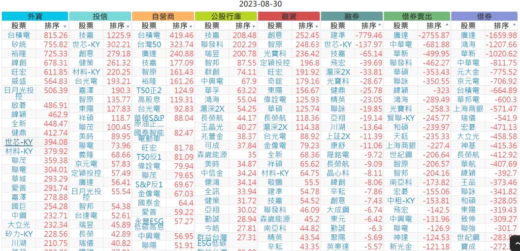 2023-0830上市【外資、投信】買賣超個股 2023-08-31 股狗網小編 投資誌-大盤 發表留言 投資達人APP上線囉!!!『安裝APP』 上市:【外資、投信】買超(依金額) (單位:百萬) 上市:【外資、投信】賣超(依金額) (單位:百萬) 上市:【外資、投信】買超(依張數) (單位:張數) 上市:【外資、投信】賣超(依張數) (單位:張數) 免責宣言 本網站文章所提供資訊僅供參考,並無任何推介買賣之意,投資人應自行承擔交易風險。 分享此文: 分享到 X(在新視窗中開啟) X 分享到 Facebook(在新視窗中開啟) Facebook 喜歡 正在載入...