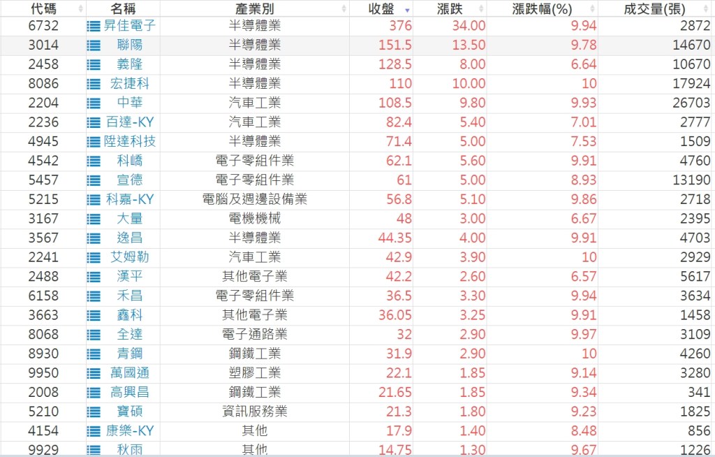2023-0904股價創20日新高爆量上漲股 2023-09-05 股狗網小編 選股條件 發表留言 投資達人APP上線囉!!!『安裝APP』: 利用股狗選股的選股條件可以【挑選突破20日新高,爆量上漲起漲點股票】 1.股狗選股 https://www.stockdog.com.tw 2.選股條件: a.收盤價創20日新高 b.當日漲幅 > 2% C.成交量大於5日均量2倍 免責宣言 本網站文章所提供資訊僅供參考,並無任何推介買賣之意,投資人應自行承擔交易風險。 分享此文: 分享到 X(在新視窗中開啟) X 分享到 Facebook(在新視窗中開啟) Facebook 喜歡 正在載入...