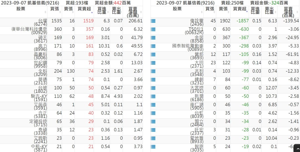 2023-0907關鍵券商買賣超 2023-09-07 股狗網小編 籌碼面每日資訊 發表留言 投資達人APP上線囉!!!『安裝APP』: 關鍵券商買賣超: 臺銀證券(1040): 台灣摩根士丹利(1470): 凱基台北(9268): 凱基信義(9216): 元大土城永寧(9875): 康和永和(845B) : 富邦建國(9658): 免責宣言 本網站文章所提供資訊僅供參考,並無任何推介買賣之意,投資人應自行承擔交易風險。 分享此文: 分享到 X(在新視窗中開啟) X 分享到 Facebook(在新視窗中開啟) Facebook 喜歡 正在載入...