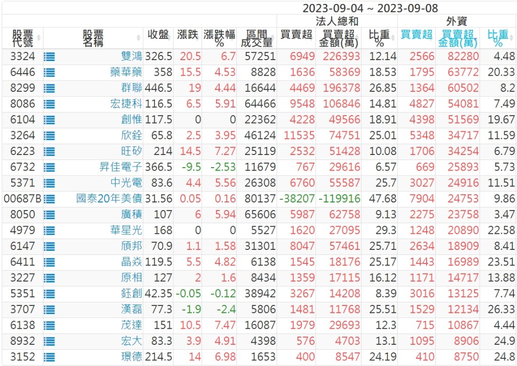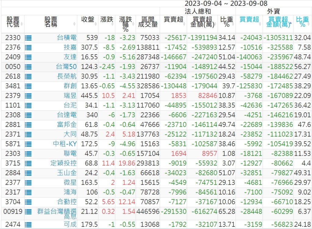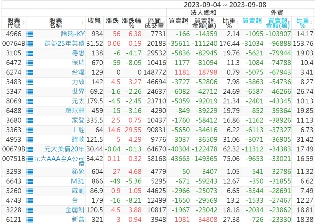 2023/09/04~2023/09/08近5日【外資】買賣超個股 2023-09-10 股狗網小編 投資誌-大盤 發表留言 投資達人APP上線囉!!!『安裝APP』: 外資本周累積【賣超】約370億元。 【上市外資買超個股】(以金額排行,單位:萬) 【上市外資賣超個股】(以金額排行,單位:萬) 【上櫃外資買超個股】(以金額排行,單位:萬) 【上櫃外資賣超個股】(以金額排行,單位:萬) 免責宣言 本網站文章所提供資訊僅供參考,並無任何推介買賣之意,投資人應自行承擔交易風險。 分享此文: 分享到 X(在新視窗中開啟) X 分享到 Facebook(在新視窗中開啟) Facebook 喜歡 正在載入...