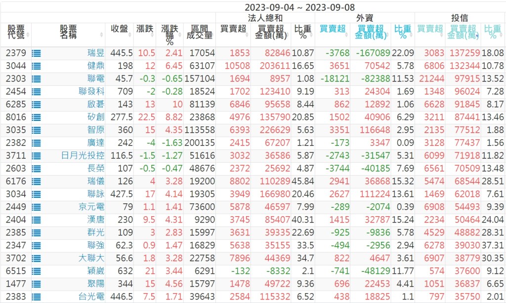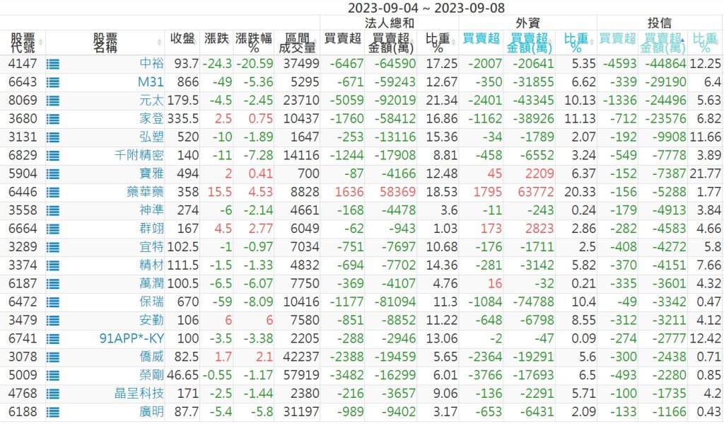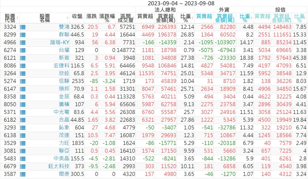 2023/09/04~2023/09/08近5日【投信】買賣超個股 2023-09-10 股狗網小編 投資誌-大盤 發表留言 投資達人APP上線囉!!!『安裝APP』: 【上市投信買超個股】(以金額排行,單位:萬) 【上市投信賣超個股】(以金額排行,單位:萬) 【上櫃投信買超個股】(以金額排行,單位:萬) 【上櫃投信賣超個股】(以金額排行,單位:萬) 免責宣言 本網站文章所提供資訊僅供參考,並無任何推介買賣之意,投資人應自行承擔交易風險。 分享此文: 分享到 X(在新視窗中開啟) X 分享到 Facebook(在新視窗中開啟) Facebook 喜歡 正在載入...