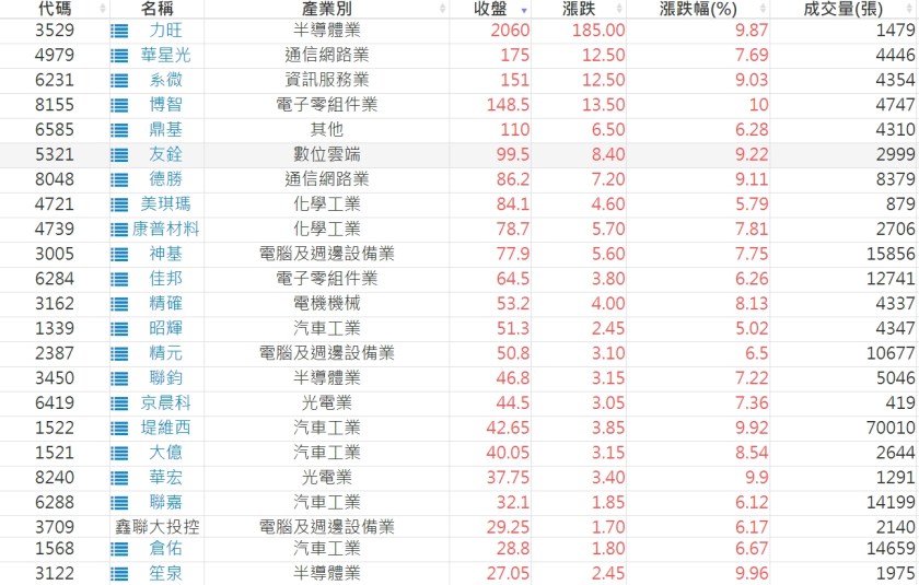 2023-0913股價創20日新高爆量上漲股 2023-09-13 股狗網小編 選股條件 發表留言 投資達人APP上線囉!!!『安裝APP』: 利用股狗選股的選股條件可以【挑選突破20日新高,爆量上漲起漲點股票】 1.股狗選股 https://www.stockdog.com.tw 2.選股條件: a.收盤價創20日新高 b.當日漲幅 > 2% C.成交量大於5日均量2倍 免責宣言 本網站文章所提供資訊僅供參考,並無任何推介買賣之意,投資人應自行承擔交易風險。 分享此文: 按一下即可分享至 X(在新視窗中開啟) X 按一下以分享至 Facebook(在新視窗中開啟) Facebook 喜歡 正在載入...